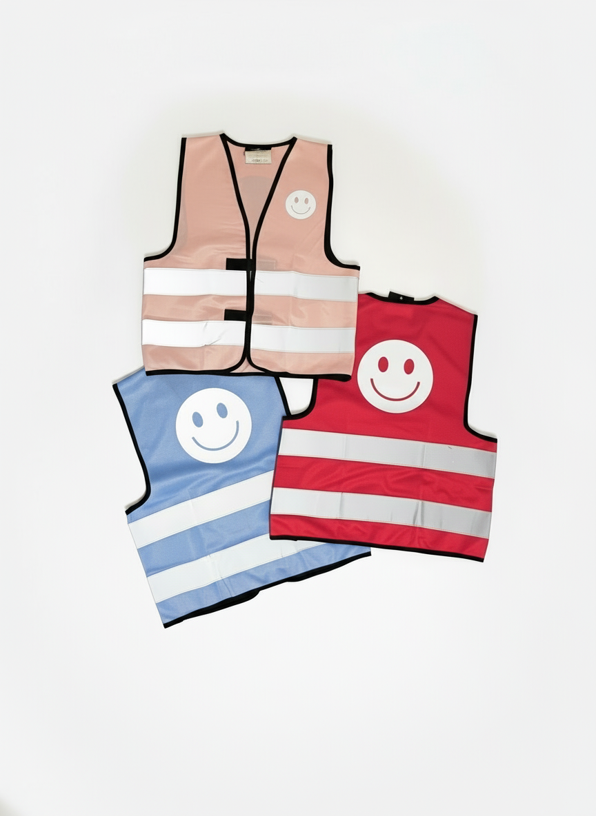 Die reflektierende Kinderwarnweste mit Smileymotiv kombiniert zuverlässigen Schutz mit ansprechendem Design. Ein Smiley hinten sowie vorne und zusätzliche reflektierende Streifen sorgen für maximale Sichtbarkeit bei schlechten Lichtverhältnissen. In zwei Größen erhältlich. Mit verstellbarem Klettverschluss für eine sichere, individuelle Passform. Das moderne Sicherheitsaccessoire macht Kinder in dunklen Jahreszeiten zum Hingucker und gibt Eltern Gewissheit. Ideal für Schulwege, Freizeitaktivitäten und nächtliche Ausflüge.