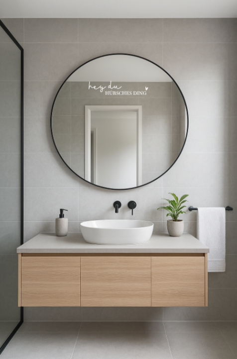 Verwandel deinen täglichen Spiegelblick in einen Moment der Selbstbestätigung. Dieser Spiegelaufkleber mit der ermutigenden Aufschrift "Hey du hübsches Ding" ist mehr als nur eine Dekoration – er ist ein täglicher Begleiter für innere Zufriedenheit und Selbstakzeptanz. Die robuste Haftung garantiert lange Haltbarkeit, während das dezente Design sich harmonisch in dein Badezimmer einfügt. Nutze diese kleine, aber kraftvolle Erinnerung, um deine Selbstliebe zu stärken und positive Gedankenmuster zu etablieren.