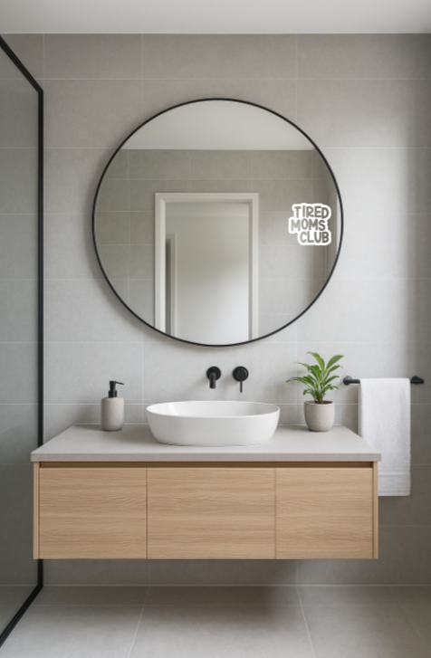Spiegelaufkleber "Tired Mums Club" – Der perfekte Begleiter für jeden Morgen. Dieser witzige Aufkleber bringt täglich ein Lächeln ins Gesicht und erinnert daran, dass müde Mamas nicht allein sind. Mit humorvollem Design verwandelt er den Badezimmerspiegel in einen Moment der Selbstironie und Ermutigung. Ideal als Geschenk für erschöpfte Mütter oder als liebevoller Selbstkauf. Einfach anzubringen, langlebig und ein täglicher Motivationsbooster für alle, die den "Tired Mums Club" angehören.